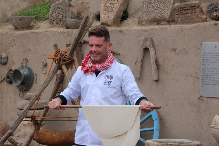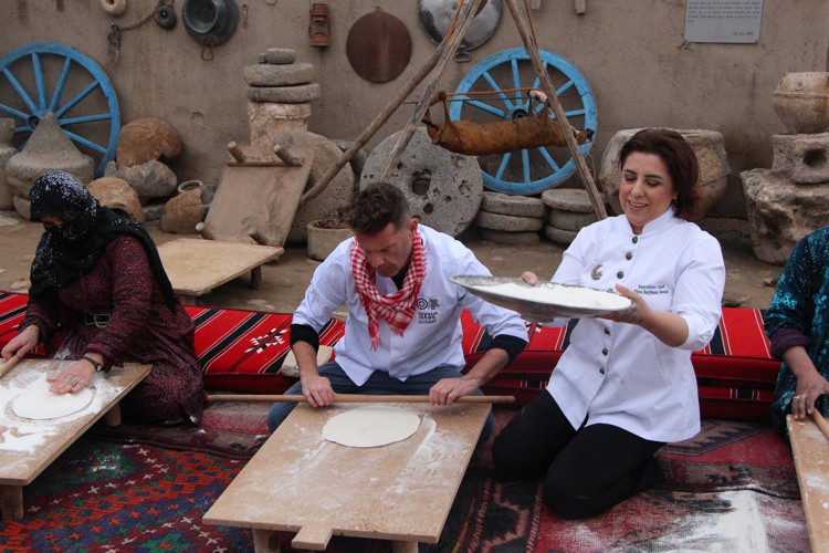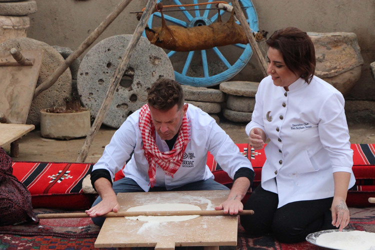 Gastronominin ilk başladığı yer olarak kabul edilen Şanlıurfa’da bir araya gelen şefler, bölge kadınlarıyla birlikte tarihte bilinen ilk ekmek formu olan yufkayı Mezopotamya’nın en eski buğdayı sorgül ile pişirdi.