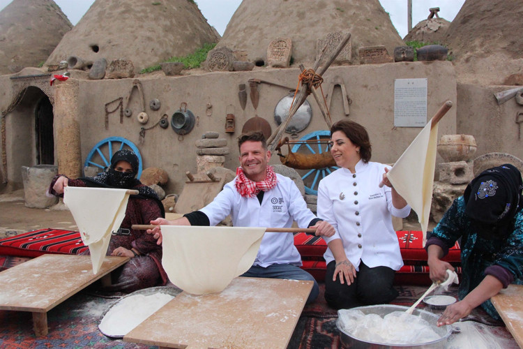 Bask Dünya Aşçılık Ödülleri’nde dünyanın ilk 10 şefi arasına giren Mardinli Şef Ebru Baybara Demir ve Brezilyalı Şef David Hertz dünyadaki iklim değişikliğine dikkat çekmek için Şanlıurfa’da bir araya gelerek buradaki kadınlarla yufka açıp, pişirdi.