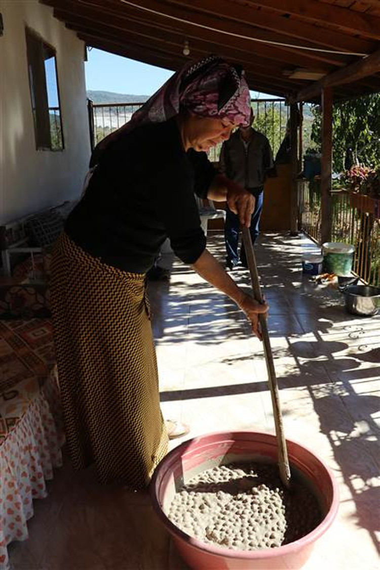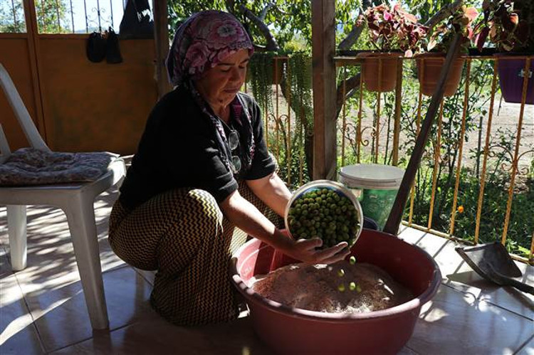 Kendisinin de yıllardır bu yöntemle zeytini tatlandırdığını aktaran Bilge, "Hasat sırasında yeşil zeytin toplamak için ayrıca mesai harcarız. İçlerinden ezik olmayan, çürüğü veya yarası olmayanları ayrı bir yerde biriktiririz. Sonra da odun ateşiyle pişirdiğimiz yemeklerden kalan küllerden bir miktar alıp zeytini külle karıştırıyoruz. Kül zeytinin acısını almayı ve tatlanmasını sağlıyor" diye konuştu.