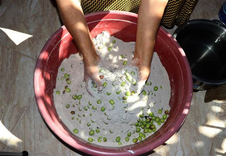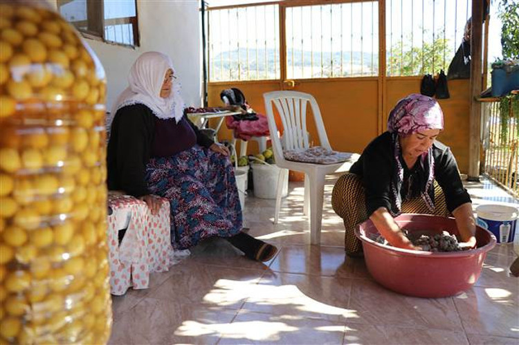 Zeytin bahçelerinde hasada başlayan kadınlar, topladıkları ürünleri kahvaltılık için özenle seçiyor. Eziği ya da çürüğü olmayan yeşil zeytinleri tatlandırmak için yemek ocakları veya ekmek tandırlarından odun külü toplayan kadınlar, külü bir kap içerisinde sıcak suyla harmanlıyor.