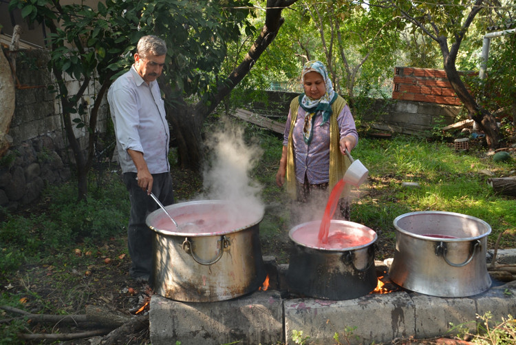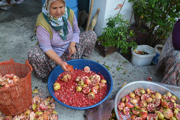 Aliağa’da ev kadınlarının hem sofralara lezzet katmak hem de aile bütçesine destek için her yıl kış öncesi yaptığı nar ekşisinin zorlu üretim süreci başladı. Çıtak Mahallesi kadınlarının bin bir emekle ürettiği nar ekşisinin sofralara uzanan yolculuğu, birçok zahmetli süreci içeriyor.