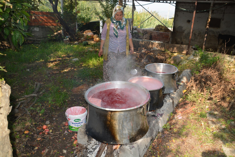 Çıtak Mahallesi Muhtarı Üstün Güleç, dalından topladıkları narın zahmetli yolculuktan sonra sofralarına nar ekşisi olarak geldiğini söyledi.