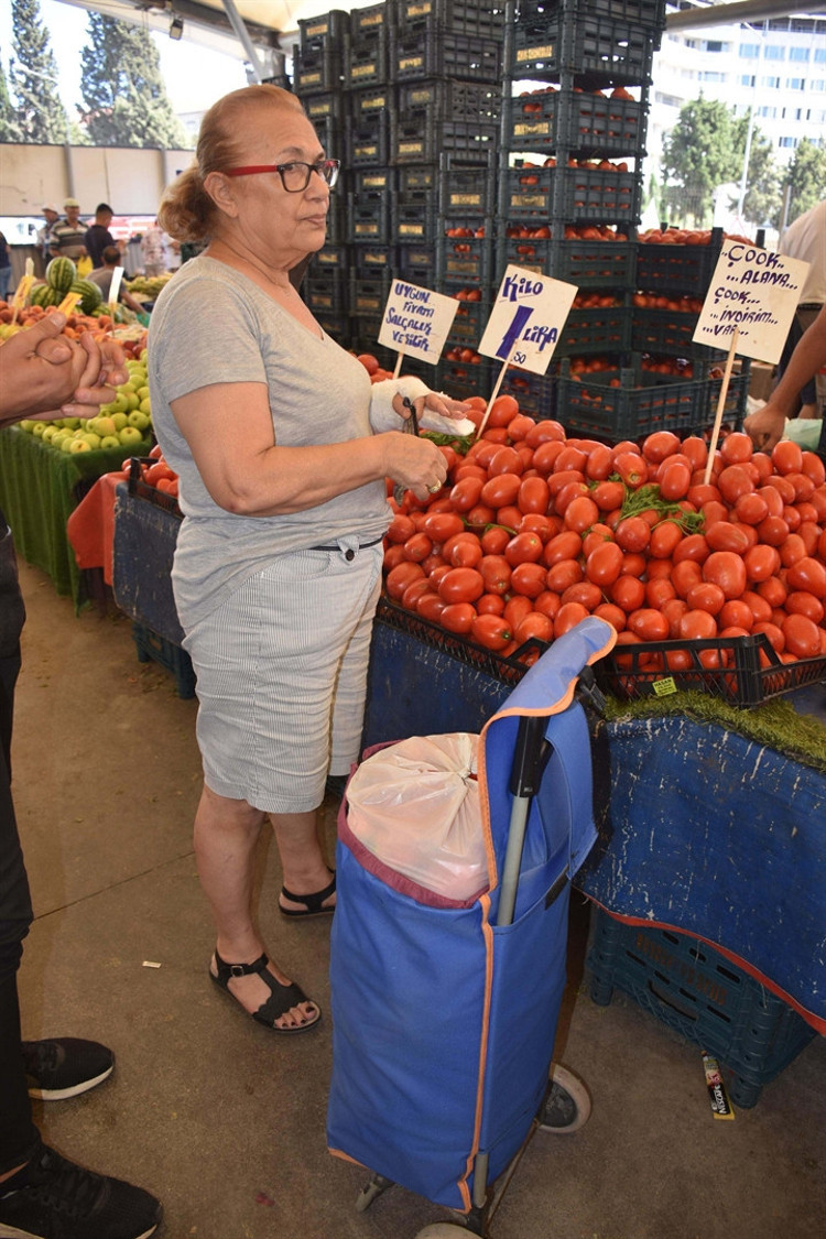 Pazardan 35 kilo domates satın alan Tekin, "Kışlık domates yapacağım, şimdilik 35 kilo aldım. Yaz bitmeden bir kez daha gelir yine alırım. Şimdi pazar arabam doldu. 35 kilodan kaç kavanoz çıkarsa ilk etapta bunları yapacağım. Normalde her yaz 70-80 şişe yapıyorum. Hem kendim kullanıyor hem kızıma veriyorum. Pazar arabasını doldurdum. Zor olacak ama taşıyacağım" dedi.