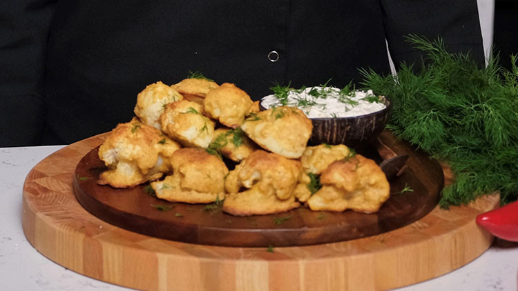 📍Sıcak karnabaharları servis tabağına alın. Üzerine dereotunu son dokunuş olarak ekleyip hazırladığınız özel sosla birlikte servis edin. Afiyet olsun.