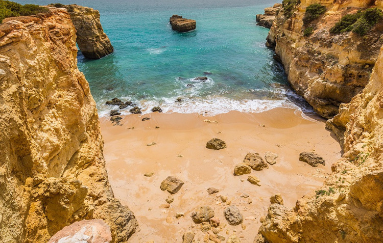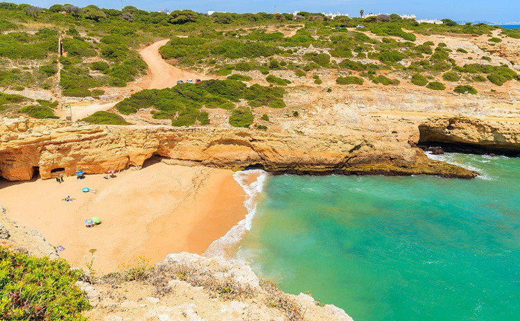 Portekiz’in Algrave bölgesine akın eden turist grupları birçok plajı da dolduruyor. Şemsiye, şezlong, bar gibi alışıldık plaj hizmetlerinin bulunmadığı bu minik koy ise gözlerden uzak bir yerde.