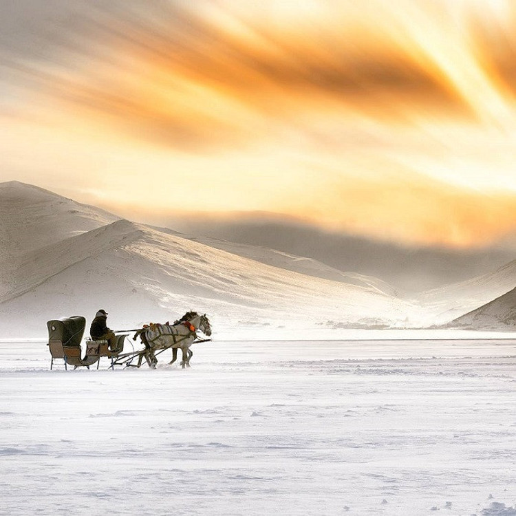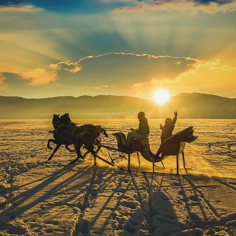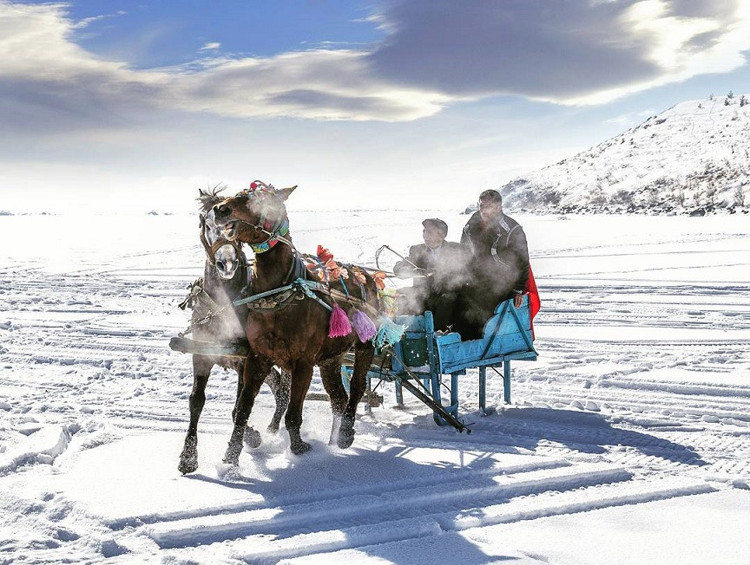 Zengin tarihi, etkileyici doğası ve büyüleyici Çıldır Gölü ile ilginizi çekebilecek yerlerden biri Kars… Ocak-Mart ayları arasında donan Çıldır Gölü üzerinde atlı kızaklarla yapacağınız bir gezi, unutulmaz anlar yaşamanızı sağlayacak. Fotoğraf: Ahmet AKBOĞA