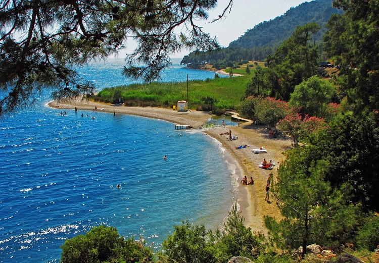 Yemyeşil tepelerin denize dik olarak indiği coğrafyada iki büyük kara parçası denize doğru uzanır. Bunlardan biri kuzeydeki Yason Burnu, diğeri ise Çam Burnu'dur.