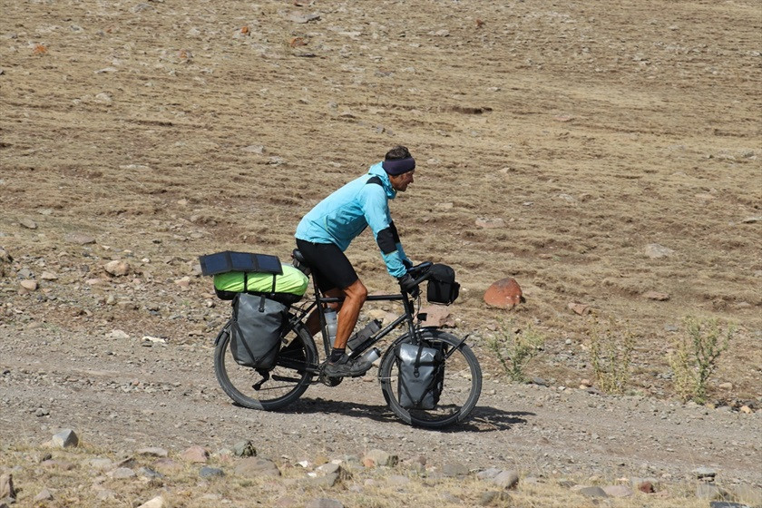 Fransa’dan bisikletiyle 12 hafta önce yola çıkan doğa tutkunu 61 yaşındaki Jean Luc Gınhoux, farklı kültürleri tanımak amacıyla 7 bin kilometre yol katederek Ağrı’nın yüksek rakımlı Balık Gölü'ne ulaştı.