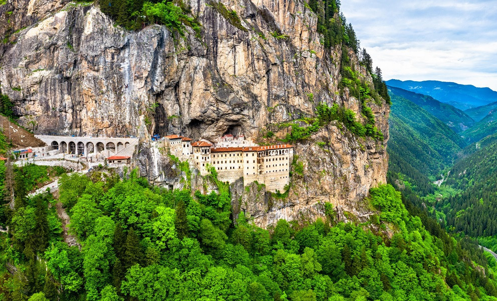 Türkiye’nin kuzeydoğusunda, sarp kayalıkların içine oyulmuş bu adres hem doğanın hem de tarihin izini taşıyor. Karadeniz kıyılarına yakın bir konumda yer alan Sümela Manastırı, CNN Travel yazarı Joe Yogerst’in deyimiyle, “gerçek bir yerden çok, yapay zekâ tarafından üretilmiş gibi görünen” büyüleyici bir manzara sunuyor.