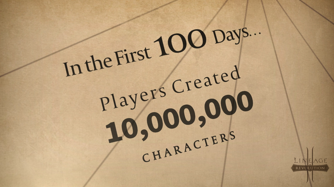 Netmarble tarafından yayınlanan infografik videoda oyunun ilk yayın tarihi olan 15 Kasım 2017'den itibaren Lineage 2: Revolution oyuncularının gerçekleştirdiği tüm etkileyici başarılar ve ilgi çekici rakamlar yer alıyor. Lineage 2: Revolution oyuncuları 10 milyon karakter yaratırken, 160 bin 185 klan kuruldu, 630 bin Binek Ayı ödülü dağıtıldı ve 179 milyon 585 bin 426 saat boyunca oyun oynandı.