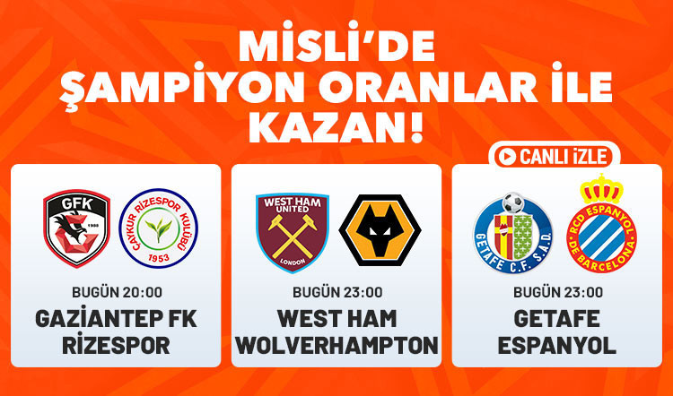 Bu zorlu maçta kullanıcılarına Şampiyon Oranlar sunan Misli'de West Ham'ın galibiyetine 1.69 oran veriliyor. Beraberliğe 3.44 oran verilirken Wolverhampton'ın kazanırına 3.39 oran veriliyor.