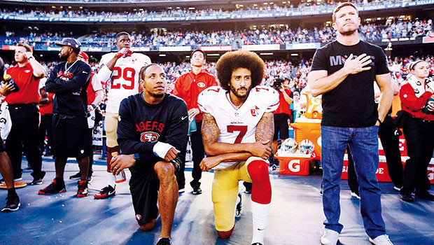 - 49ers quarterback’i Colin Kaepernick, ABD ulusal marşı çalarken dizinin üzerine çöküyor ve bir protestonun fitilini ateşliyor...