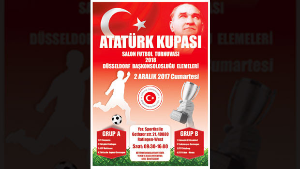 ALMANYA’daki Türk toplumu ve gençler arasında ilişkilerin güçlendirilmesi amacıyla düzenlenen turnuvanın Düsseldorf Başkonsolosluğu bölgesi eleme maçları 2 Aralık Cumartesi günü oynanacak. Turnuvanın üç ayaktan oluşacağı, ilk olarak başkonsolosluk elemeleri ve sonrasında bölge maçlarının yapılacağı belirtildi. Turnuvanın finalinin ise Berlin Büyükelçiliği himayesinde Berlin’de oynanması planlanıyor.