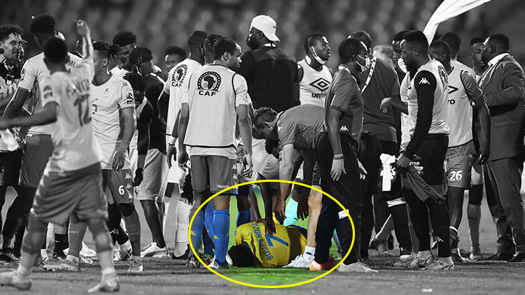 Tetteh'nin yumruğu sonrasında Boupendza acı içinde yerde kalırken hakem, kırmızı kart göstermek için Tetteh'yi yanına çağırdı. Tetteh ise hakemin çağrısına karşılık vermeyip soyunma odasının yolunu tuttu. Bunun üzerine hakem, 25 numaralı oyuncuya(Tetteh) kırmızı kart gösterdiğini işaret etti.