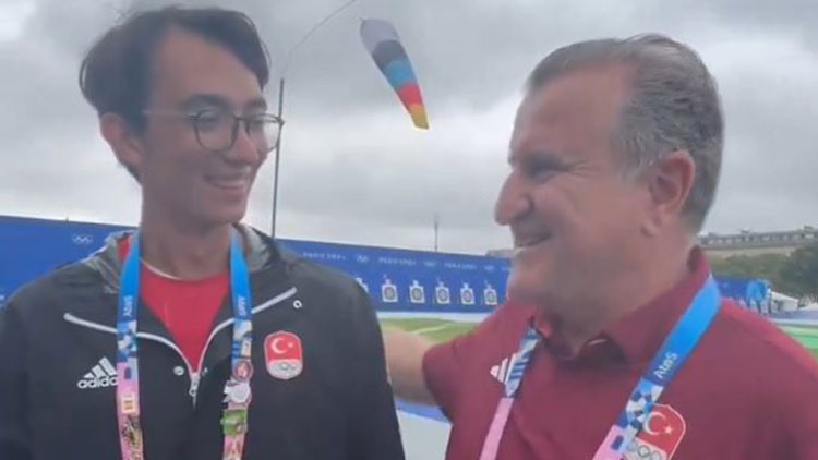 Les Invalides'te ise milli okçularla bir araya gelen Bakan Bak, burada da sporcularla bir müddet sohbet edip, antrenmanı izledi.