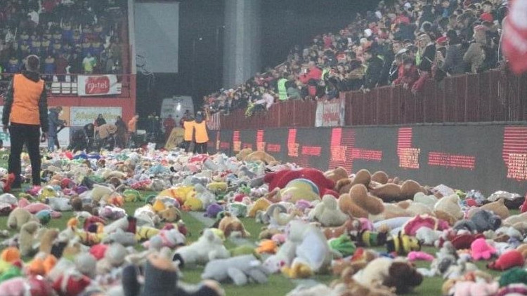 Bosna Hersek Futbol Ligi'nde Zeljeznicar ile Sloboda, Grbavica Stadyumu'nda karşılaşırken, müsabaka öncesi her iki takımın taraftarları, Kahramanmaraş merkezli yaşanan depremlerde etkilenen çocuklara destek olmak için sahaya oyuncaklar attı.