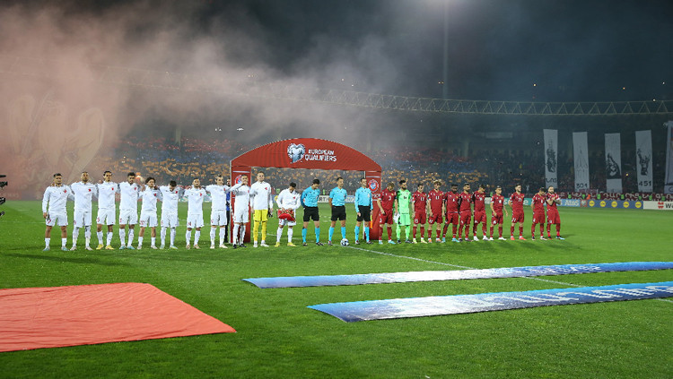 A Milli Futbol Takımı, karşılaşma öncesinde İstiklal Marşımızı okurken, stadyumda yer alan Ermeni taraftarlar, İstiklal Marşımızı protesto etti.
