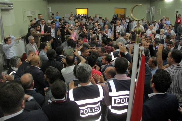 Çevik kuvvet ekipleri salona girmesi, olası bir kavgayı önledi.