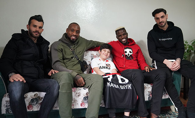 Kırmızı siyahlı futbolcular, takım arkadaşları tarafından imzalanan ve arkasında 7 numara 'Enes' yazılı formayı küçük taraftara hediye etti. Dört futbolcu, Enes ile oldukça keyifli zaman geçirdi. Enes, yıldız isimleri karşısında gördüğü anda duygularını saklayamazken, bu ziyaretten dolayı çok mutlu olduğunu ifade etti ve Papy Djilobodji'den Gençlerbirliği karşısında gol beklediğini söyledi.