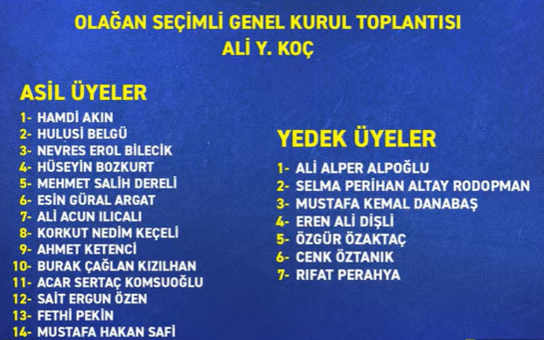 Ali Koç: 'Kavga edelim' sözü hiç öyle değil. Gelip elimi sıktınız, 'Hayırlı olsun' dediniz. 'Kavga çıkacak' dediniz. Ben de 'Kavga çıkacaksa çıkacak' dedim. Niye bunu dedim sayın başkan? Hatırlayın... 'Genel kurula, divana gelirim ama kendi emniyetlerini sağlayabilirler mi? Konuşursam neler olabileceğinin farkında değiller mi? 20-30 kişi karşısında Uğur Bey ve Ali Bey dağıldı.' dediniz. Siz neymişsiniz ya? Herkesi korkutuyorsunuz, herkes sizden kaçıyor. Siz burada bizim söylediğimiz uygunlukta davranmasaydınız, bu kürsüde duramaz ve konuşamazdınız da. Biz kavga falan etmek istemiyoruz. İnsanları korkmakla, dağılmakla suçluyorsunuz. Siz kongreye geldiğinizde neden kendimizi korumak zorunda kalalım ki? Bugünkü divan başkanlık seçimine itiraz ediyorsunuz. 'Çift kol kaldırdılar' diyorsunuz. Bakın kim çift kol kaldırmış... 'Oradakilerin 4'te 1'i delege değildi' diyorsunuz, 'Kaçak girenler vardı' diyorsunuz. 'Fenerbahçe'nin haklarını savunamıyor' diyorsunuz bizim için. Güya haksızlığa uğradığınız böyle önemli bir seçimde siz kendi haklarınızı savunmadan gidiyorsunuz.