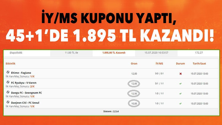 Misli Cafe'de sistem kuponları paylaşan "apollo86" efsane bir iddaa kuponu yakaladı.