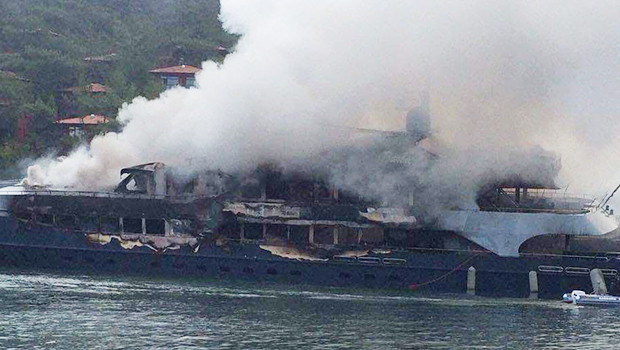 Marmaris'teki Yalancıboğaz Mevkii'nde bir marinada demirli bulunan Galatasaray Kulübü eski Başkanı Ünal Aysal'ın 50 metre uzunluğundaki 'Barbie' isimli lüks yatı çıkan yangında kül oldu.