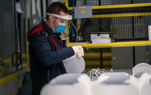 BSH Grubu’nun dünya çapındaki en büyük üretim merkezi ve en önemli üç Ar-Ge merkezinden birinin yer aldığı Çerkezköy Üretim Tesisleri’nde 3D yazıcı ve kalıp dizayn ile yüz siperlerini seri imalata hazırlayan BSH Türkiye, günde 5.000 adet yüz siperi üretiyor.