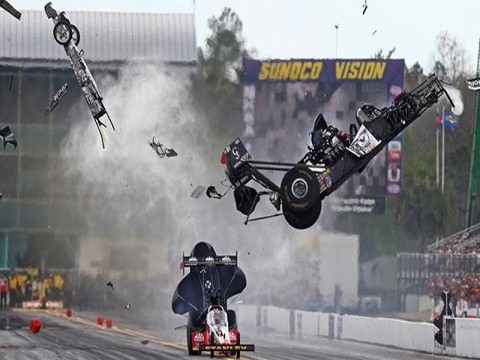 Amerikalı profesyonel drag yarışçısı Larry Dixon,saatte 450 kilometre hıza ulaştığı sırada kaza yaptı. Dixon, parçalaraayrılan araçtan yara almadan kurtuldu. O anlar kameralara yansıdı.