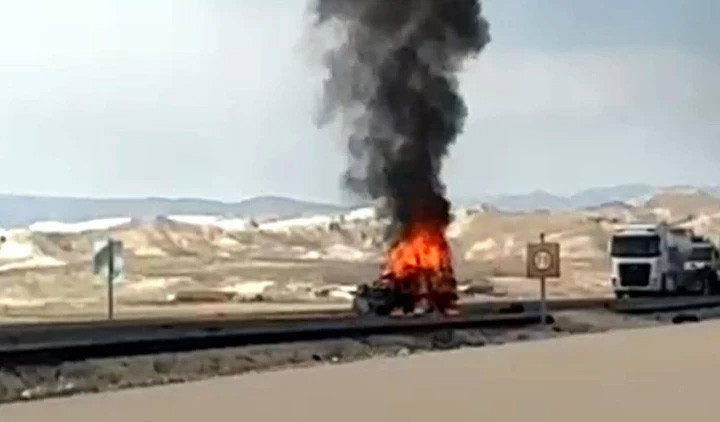 Kazada hurdaya dönen otomobil, alev alarak yanmaya başladı. Ali Bekir Özdemir, yanan aracın içinde sıkıştı.