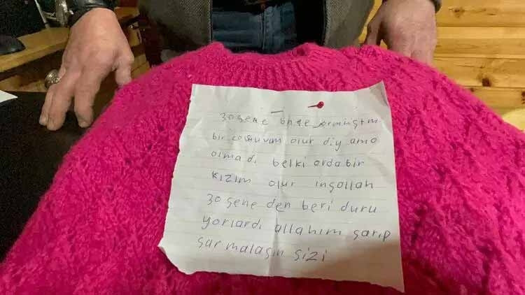 Türkiye'nin dört bir yanında olduğu gibi Bartın’da da depremzedelere yardım seferberliği sürdürülüyor. Afetzedelere gönderilmek üzere paket hazırlayanlar, valiliğe ve muhtarlıklara bırakıyor. Esentepe Mahallesi Muhtarlığı'na gönderilenler arasında; örme çocuk kıyafetlerinin olduğu poşet açıldığında 3 kazak, pantolon, hırka ve şapka çıktı. Poşete iliştirilen nottaki ‘30 sene önce örmüştüm bir çocuğum olur, diye ama olmadı. Belki orada bir kızım olur inşallah. 30 seneden beri duruyorlardı, Allah’ım sarıp sarmalasın sizi’ yazısı ise okuyanları duygulandırdı.