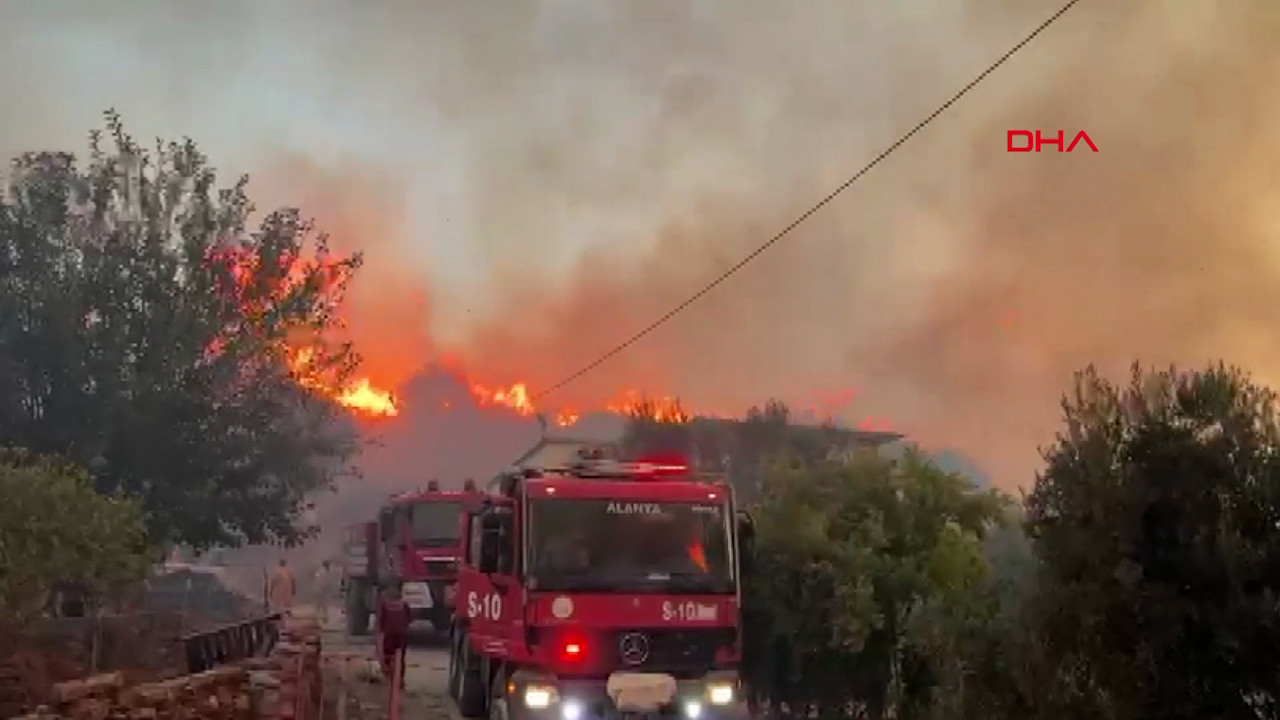 Antalya'nın Alanya ilçesinde ormanlık alanda çıkan yangına müdahale ediliyor.