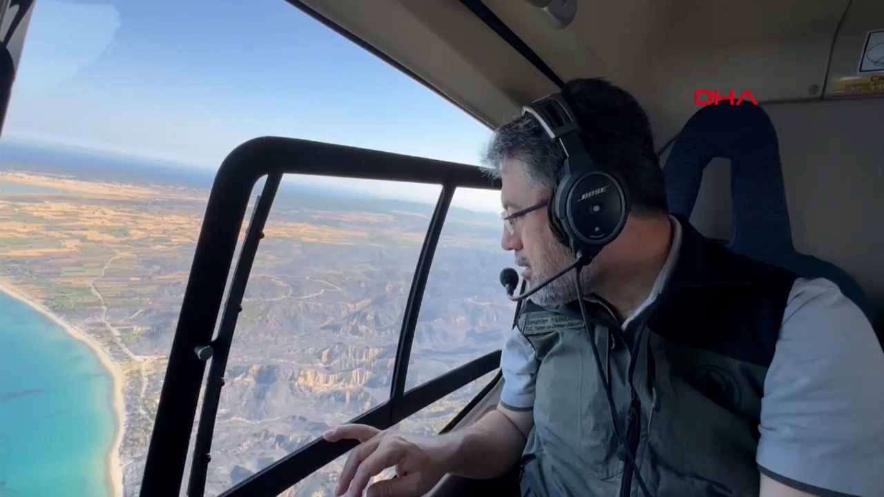 Bakan Yumaklı, Çanakkale'de yangın bölgesini havadan inceledi