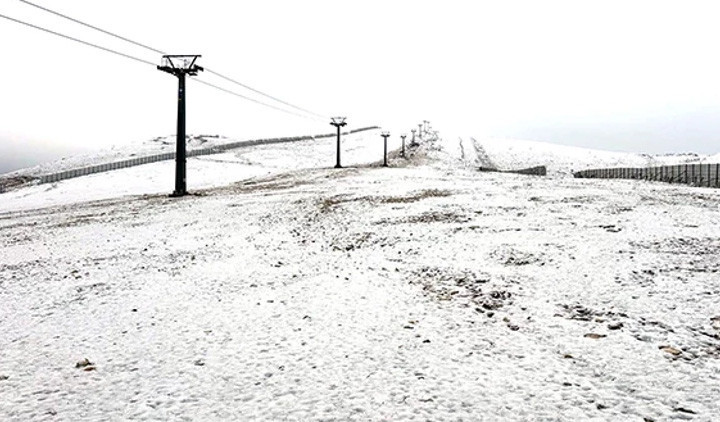Yağış nedeniyle kayak pistlerinde ince kar tabakası oluştu.