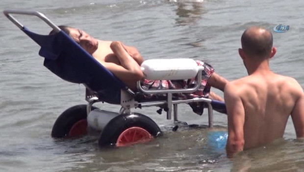 Muğla'nın Kavaklıdere ilçesi kırsal Nebiler Mahallesi'nde yaşayan 42 yaşındaki engelli birey Lütfi Erdal, hayatında ilk defa evden dışarı çıkarken, tekne gezisi ve denize girme hayalini gerçekleştirdi.