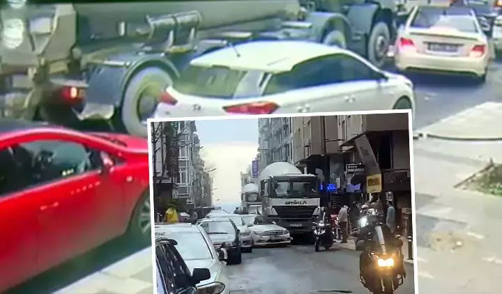 Beton mikseri otomobile çarptı! Avcılar'da kaza anı kamerada