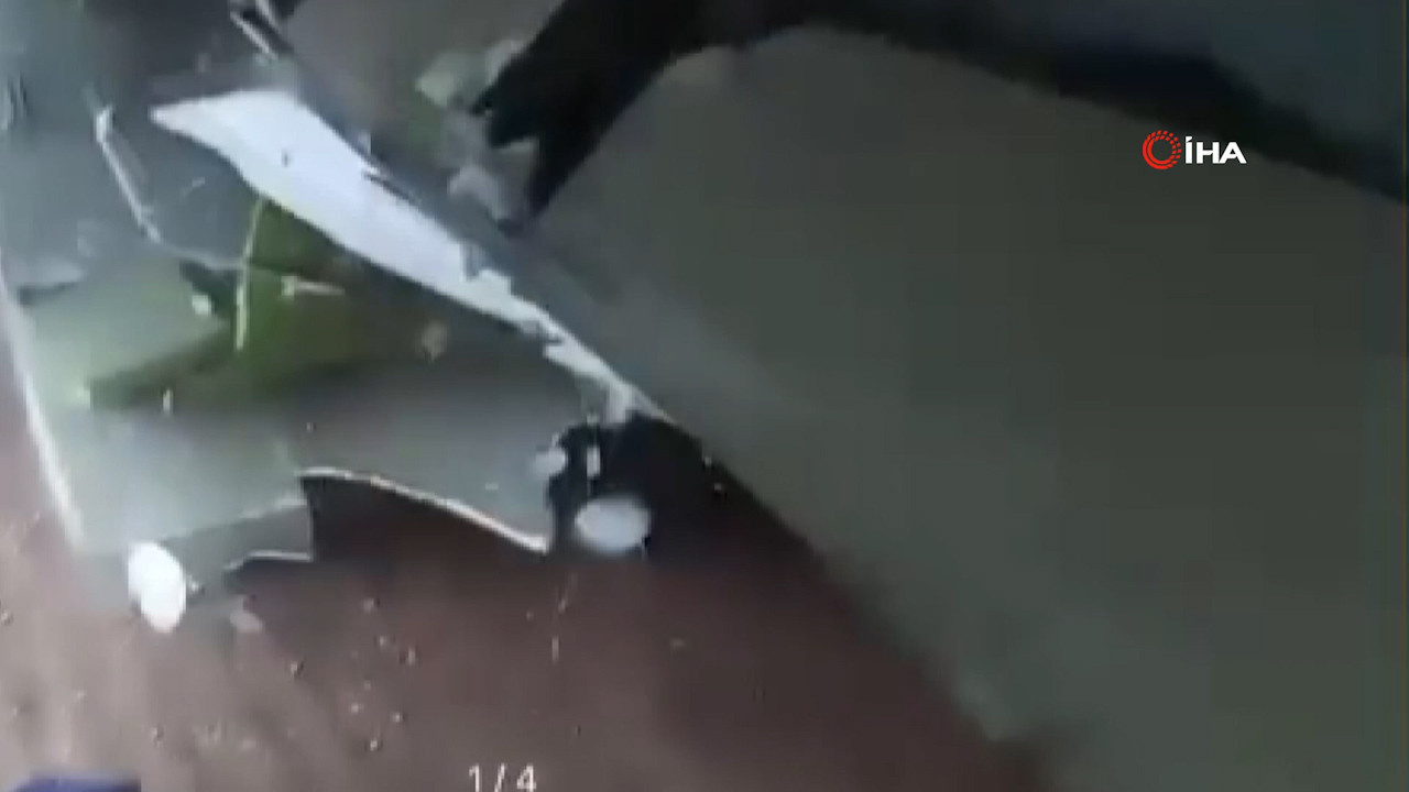 Bursa'da kuvvetli fırtına nedeniyle bir plazada bulunan ofisin asma tavanı çöktü. Durumu fark eden 2 kişi kaçarak son anda kurtuldu. O anlar iş yerinin güvenlik kamerasına yansıdı.