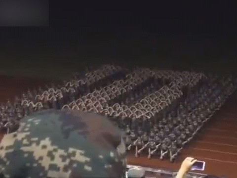 Bir kolejde asker üniformaları giymiş Çinli kız öğrenci topluluğu muhteşem bir disiplinle askeri eğitim yapıyor.
