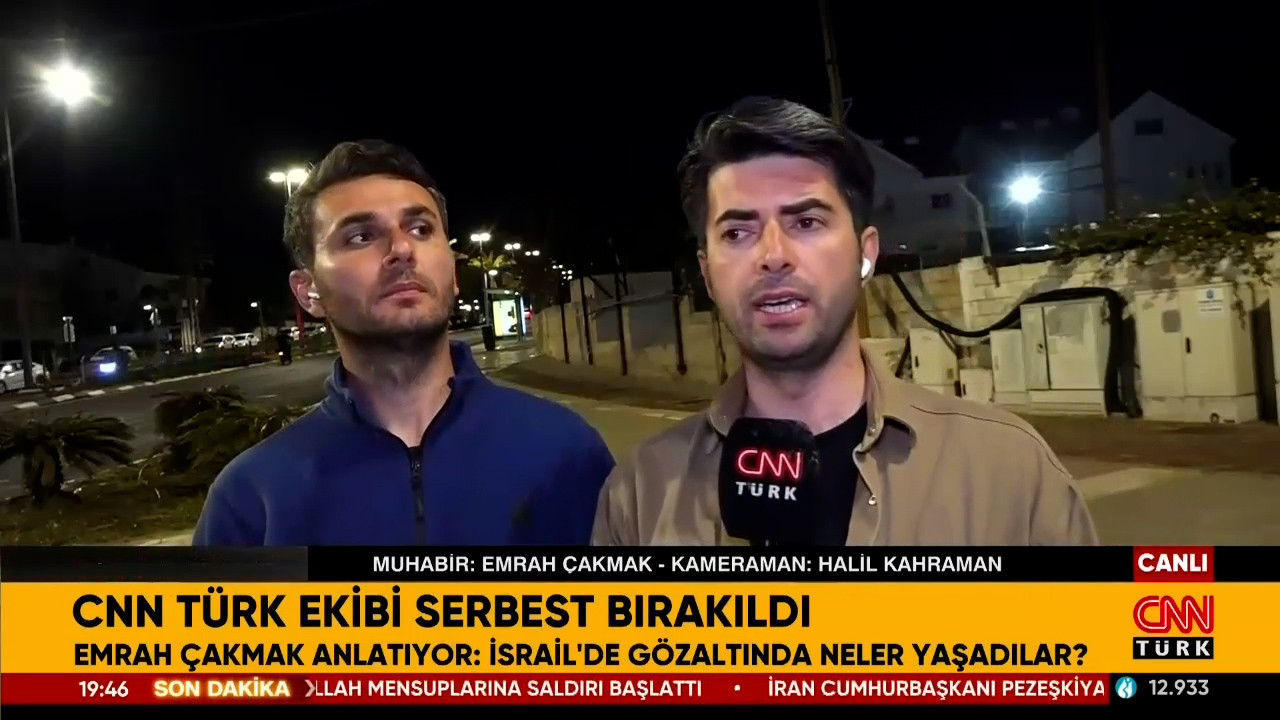 ABD/İsrail - İran savaşının ilk gününden beri sıcak bölgelerden anlık yayın yapan CNN Türk Tel Aviv'de İsrail güvenlik güçleri tarafından engellendi. Canlı yayına müdahale eden İsrailli güvenlik güçleri yayını kesti. Yayını kesilen CNN Türk ekibi, gözaltına alındı ve sonrasında serbest bırakıldı. İletişim Başkanı Burhanettin Duran, "CNN Türk muhabiri Emrah Çakmak ve kameraman Halil Kahraman’ın İsrail’de gözaltına alındığını öğrendim. Gazeteci arkadaşlarımızın bir an önce serbest bırakılması için gerekli girişimleri yapıyor ve konuyu hassasiyetle takip ediyoruz" dedi.