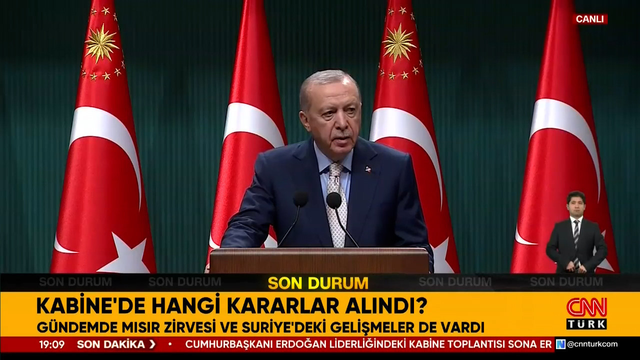 Cumhurbaşkanı Recep Tayyip Erdoğan, Kabine Toplantısı sonrası açıklamalarda bulundu. Cumhurbaşkanı Erdoğan, "Gazze'de ateşkesin sağlanması için çalışmayı da hiçbir zaman ihmal etmedik. Bir süredir çok farklı kanallardan yürüttüğümüz diplomasinin de katkısıyla Gazze'de varılan ateşkes mutabakatını memnuniyetle karşılıyoruz" dedi.