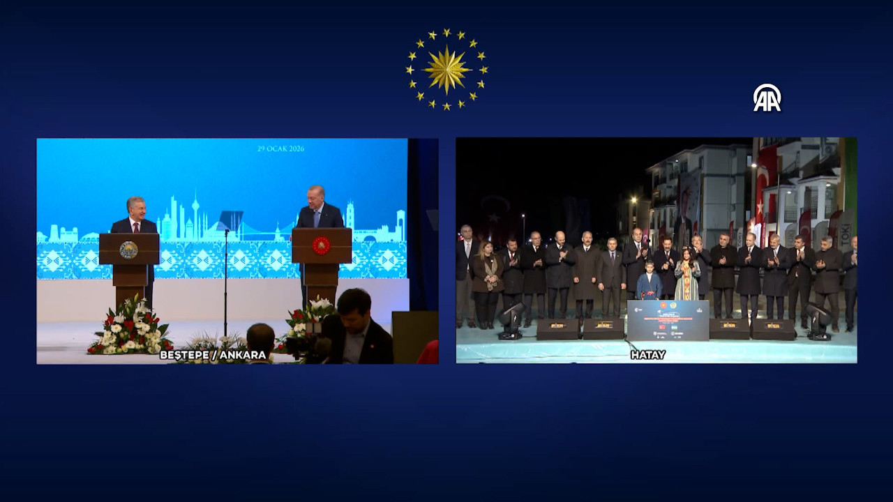 Cumhurbaşkanı Recep Tayyip Erdoğan ile Özbekistan Cumhurbaşkanı Şevket Mirziyoyev, Özbekistan'ın İstanbul'da inşa edeceği okulun temel atma törenine ve Hatay'da inşa edilen deprem konutlarının açılış törenine canlı bağlantı ile katıldı.