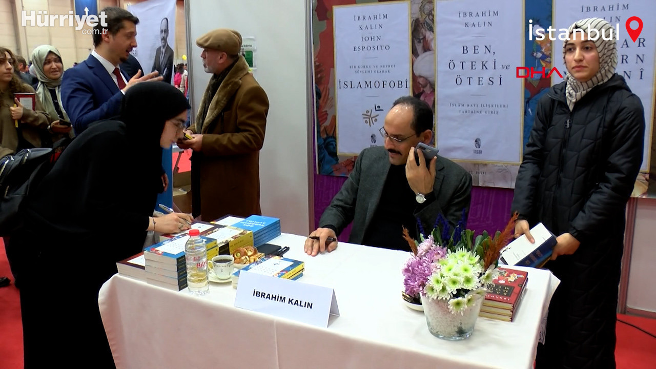 TÜYAP Uluslararası İstanbul Kitap Fuarı, pandemi nedeniyle verilen 2 senelik aranın ardından 3 Aralık'ta kapılarını açtı. İmza günlerinin de yapıldığı ve yarın sona erecek fuarda, bugün Cumhurbaşkanlığı Sözcüsü İbrahim Kalın da okurlarıyla buluştu. İbrahim Kalın'ı görmek ve kitaplarını imzalatmak için gelenler, kuyruk oluşturdu. Okurların kimi çocuklarıyla geldi, kimi de uzaktaki tanıdıklarını İbrahim Kalın'la telefonla konuşturdu.