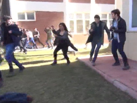 Eskişehir Anadolu Üniversitesi'nde, öğrencilerin kantine astıkları afişleri söken özel güvenlik görevlileri ile öğrenciler arasında arbede yaşandı. Arbedenin ardından gelen çevik kuvvet polisleri öğrencilere biber gazıyla müdahale etti. Çevik kuvvet şubesinde görevli polis müdürlerinin de, yakın mesafeden kısa bir süre öğrencilere biber gazı sıkmaları dikkat çekti.Olay öğle saatlerinde Anadolu Üniversitesi Yunus Emre Kampüsü'ndeki Edebiyat Fakültesi kantininde meydana geldi. Öğrenciler, kantin camlarına astıkları savaş karşıtı afişleri sökmek isteyen özel güvenlik görevlileriyle tartıştı. Afişleri söktürmek istemeyen öğrencilerle özel güvenlik görevlileri arasında arbede yaşandı. Kısa süre sonra da çevik kuvvet polisleri kantine geldi. Polisler biber gazıyla öğrencilere müdahalede bulundu. Fakülte bahçesine kaçan öğrenciler sandalye atınca polis yeniden biber gazıyla müdahale etti. Müdahale sırasında Çevik Kuvvet Şubesi'nde görevli 2 polis müdürünün de yakın mesafeden öğrencilere biber gazı sıkmaları dikkat çekti. Müdahalenin ardından 2 öğrenci polisler tarafından gözaltına alındı, diğer öğrenciler ise kaçtı.