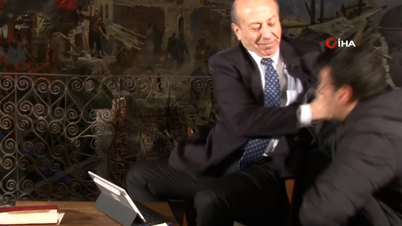 Gazeteci Muharrem Sarıkaya, canlı yayında yaşanan ses problemini çözmeye çalışan İHA muhabiri Ahmet Demir'e tokat attı. Sarıkaya'nın bu çirkin saldırısı tepkilere yol açtı.