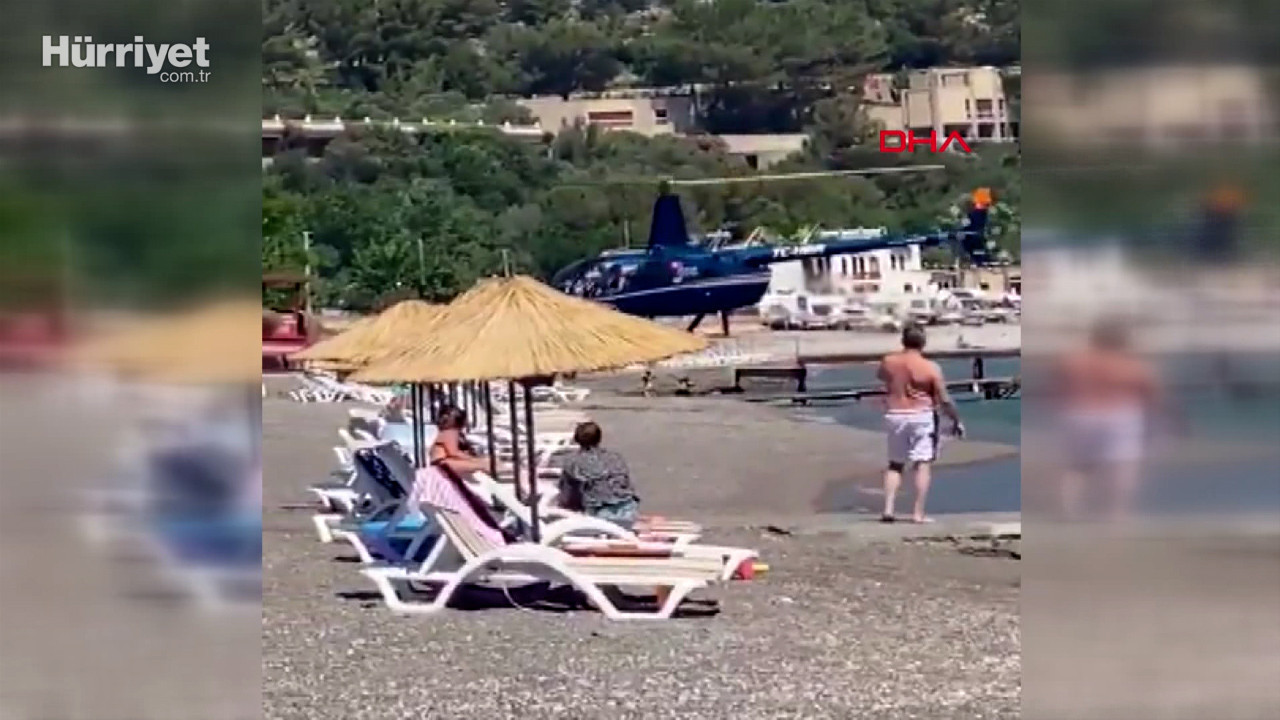 Muğla'nın Marmaris ilçesinde bir plaja inen helikopter tepki çekti. Helikopterin, sahildekilerin şaşkın bakışları arasında plaja iniş yaptığı anlar, sosyal medyada paylaşıldı.