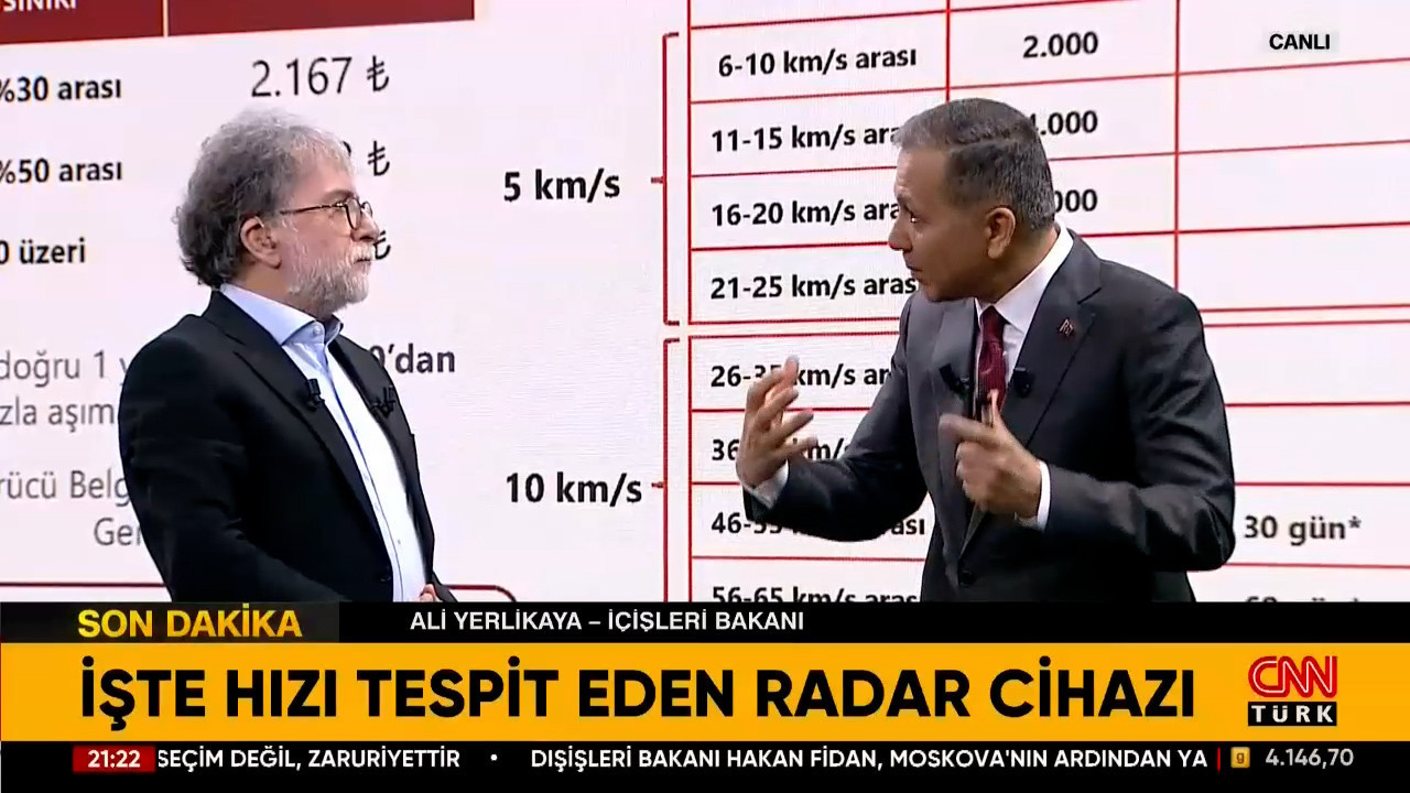 İçişleri Bakanı Ali Yerlikaya, CNN Türk'te yayınlanan Tarafsız Bölge programında Hürriyet Gazetesi Genel Yayın Yönetmeni Ahmet Hakan'ın sorularını yanıtladı. Yerlikaya, Karayolları Trafik Kanunu'nda yapılması Meclis gündemine getirilen yasa teklifine dair merak edilenleri anlattı. Öte yandan Bakan Yerlikaya, 9 Aralık'tan bu yana 250 bin Suriye'nin ülkesine döndüğünü ve bugün itibariyle Türkiye'de 3 milyon 988 bin yabancının bulunduğunu açıkladı.
