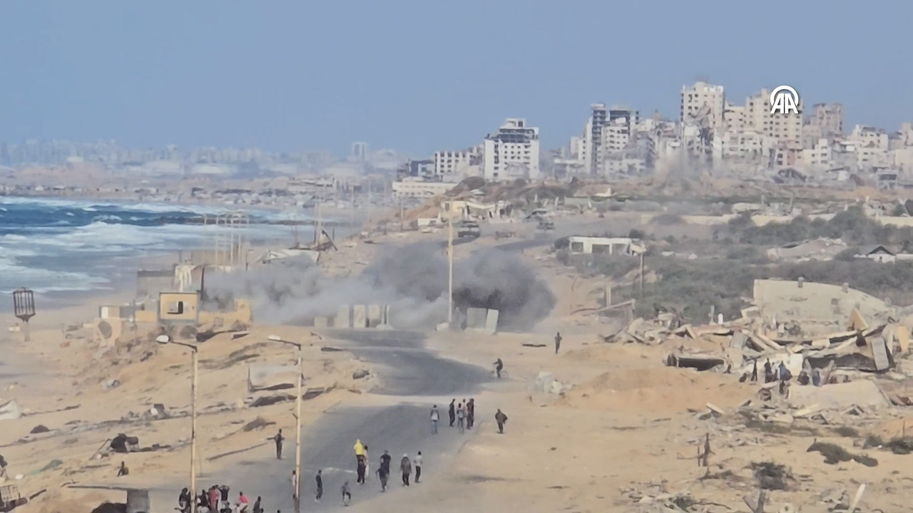Reşid Caddesi'ndeki yolu kapatan İsrail askerleri, tank atışlarıyla kuzeye geçmek isteyen Filistinlilerin olduğu bölgeyi bombaladı.