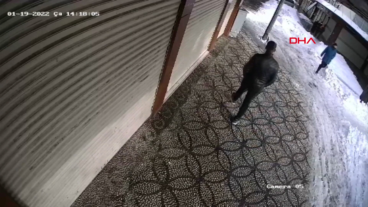Bu sırada yoldan geçen kişi, tentenin altında kalmaktan son anda kurtuldu. Bu anlar, iş yerinin güvenlik kameralarınca anbean kaydedildi.