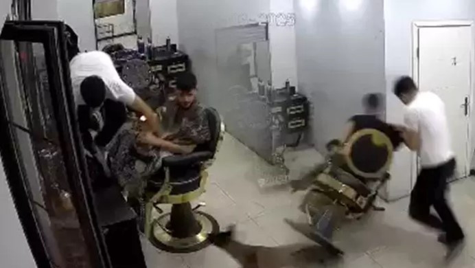 Köpek, berbere ve tıraş ettiği müşteriye yönelince panik yaşandı. Berber tezgahın üzerine çıkmaya çalışırken, müşterisi ise oturduğu yerden hızlıca kalkıp kaçtı, savrulan berber koltuğu yere düştü.