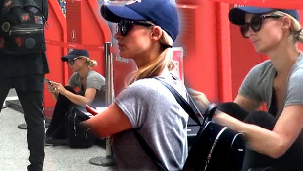 Paris Hilton bagaj işlemleri uzayınca yere oturup dinlendi