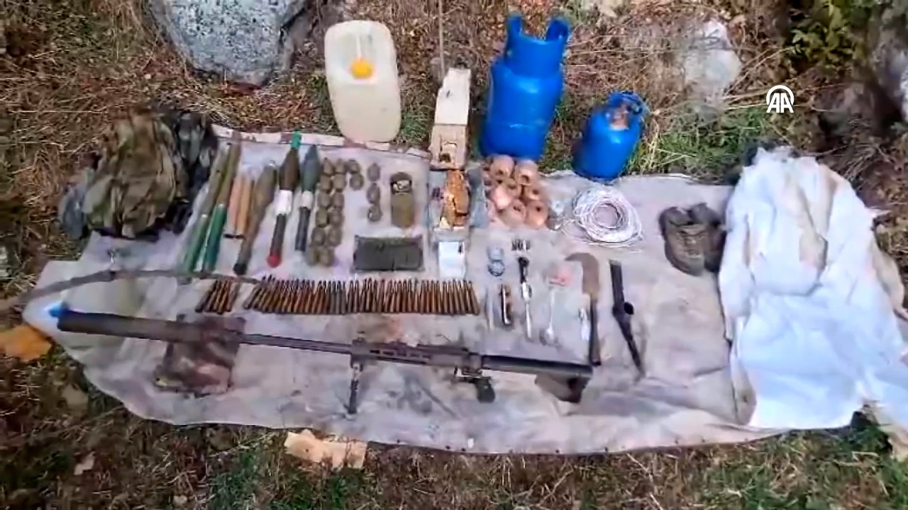 "Arama faaliyetlerinde, 1 Zagros keskin nişancı tüfeği, 14 taarruz tipi el bombası, 3 savunma tipi el bombası, 53 Zagros keskin nişancı tüfeği mühimmatı, 2 adet RPG-7 antipersonel mühimmatı, 3 adet RPG-7 antitank mühimmatı, 2 adet RPG-7 sevk fişeği, 20 el bombası fünyesi, 500 adet 5,56 mühimmat, 500 adet 7,62 mühimmat, 1 termal şemsiye ve muhtelif yaşam malzemesi ele geçirildi."
